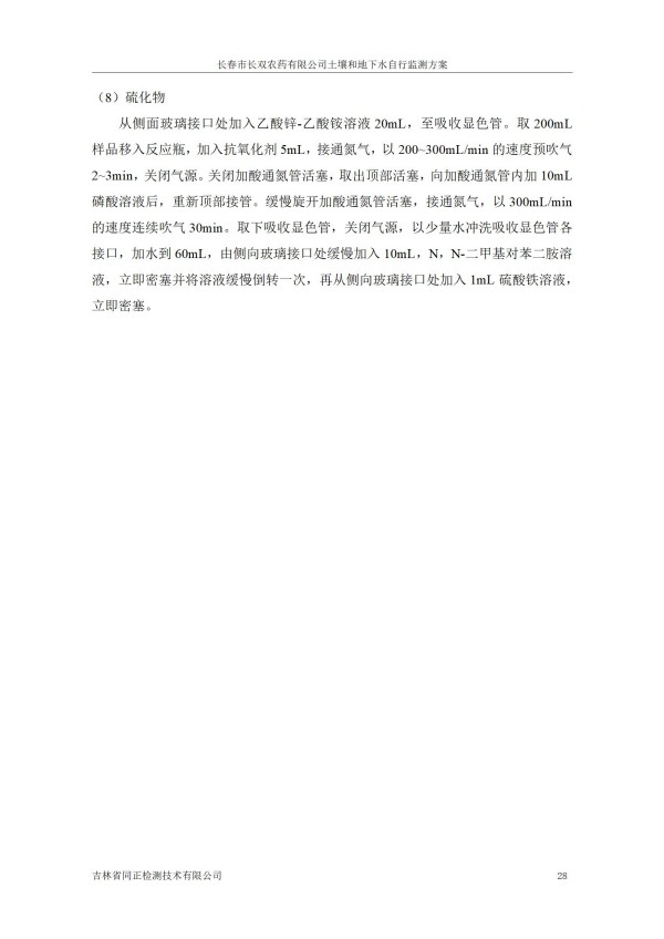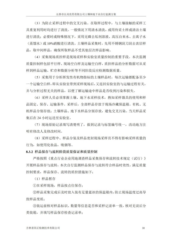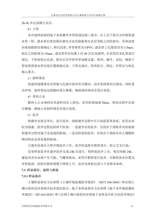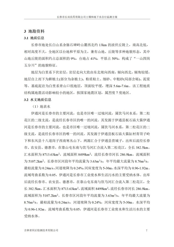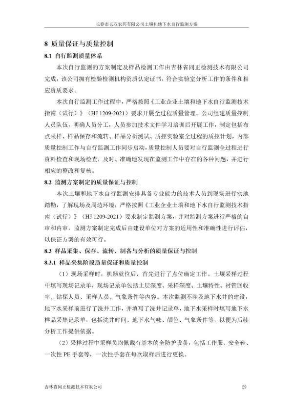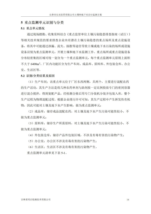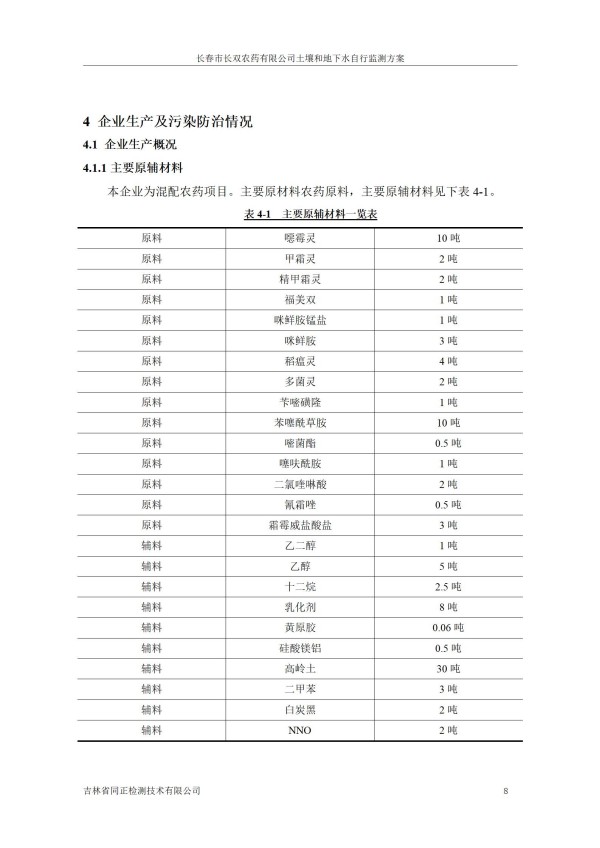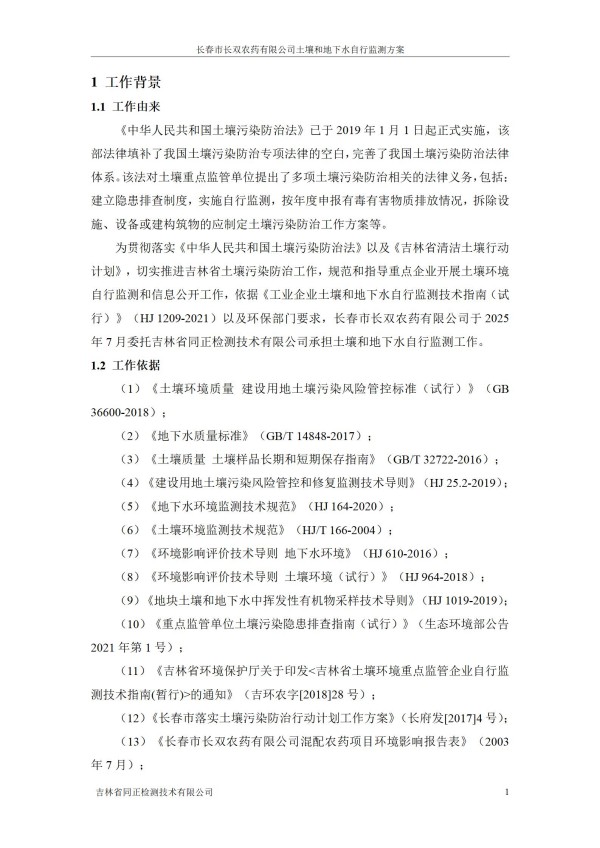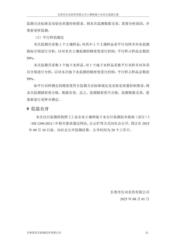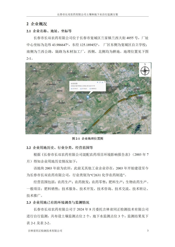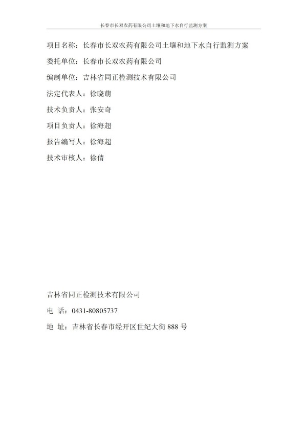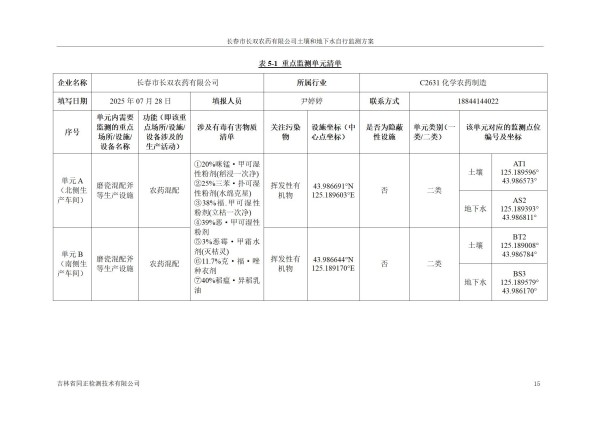 长春市长双农药有限公司土壤和地下水自行监测方案(2025度)