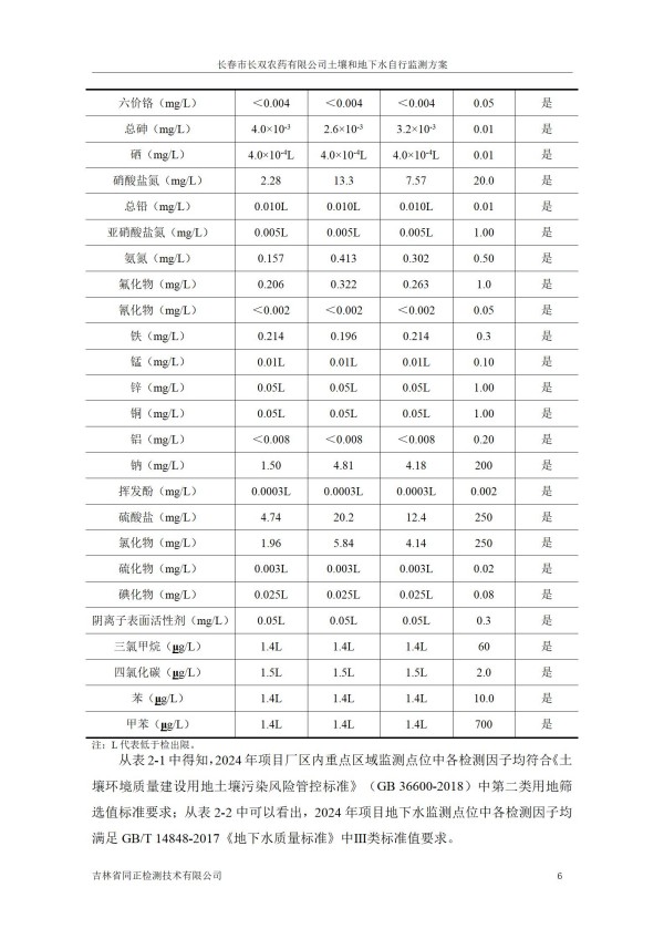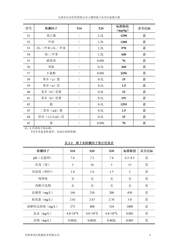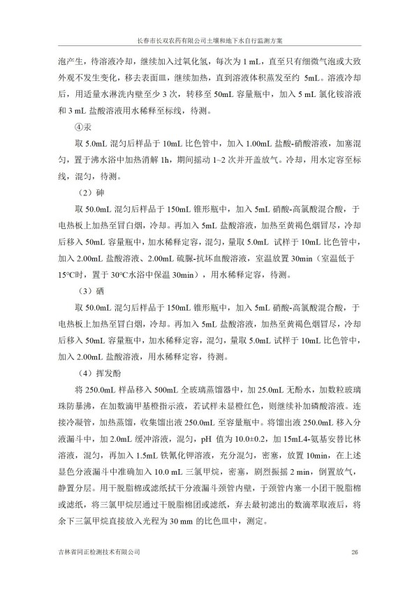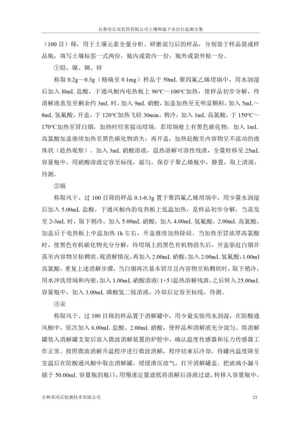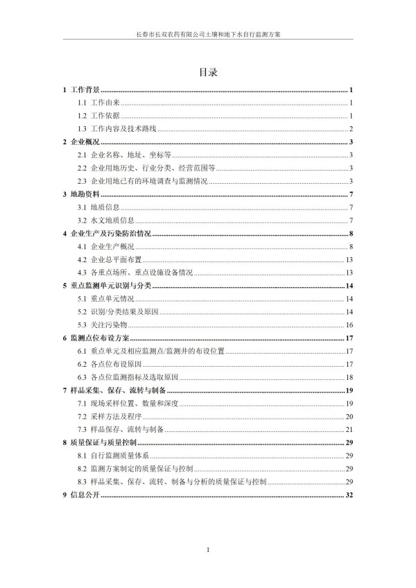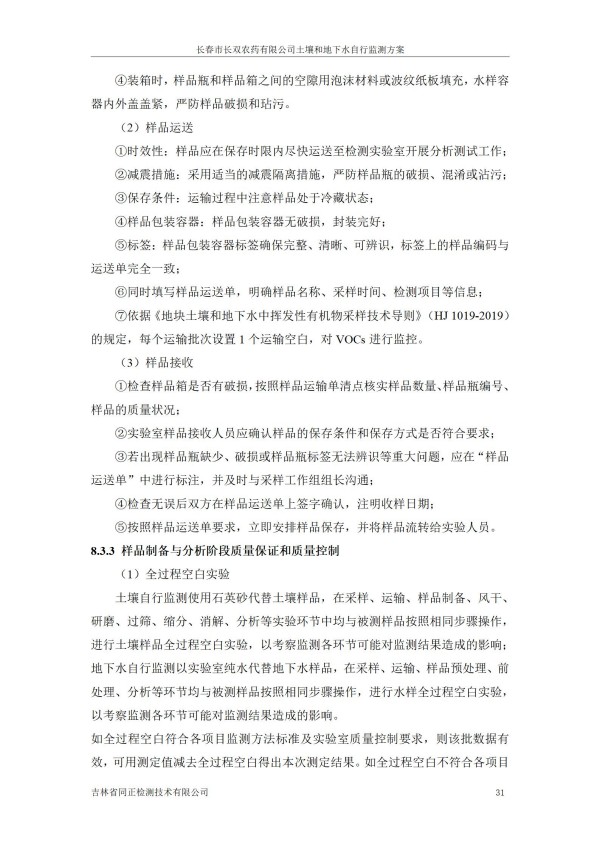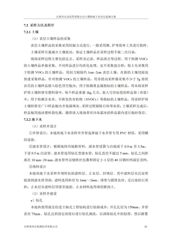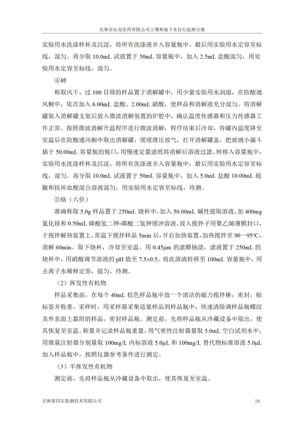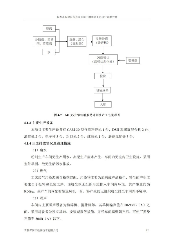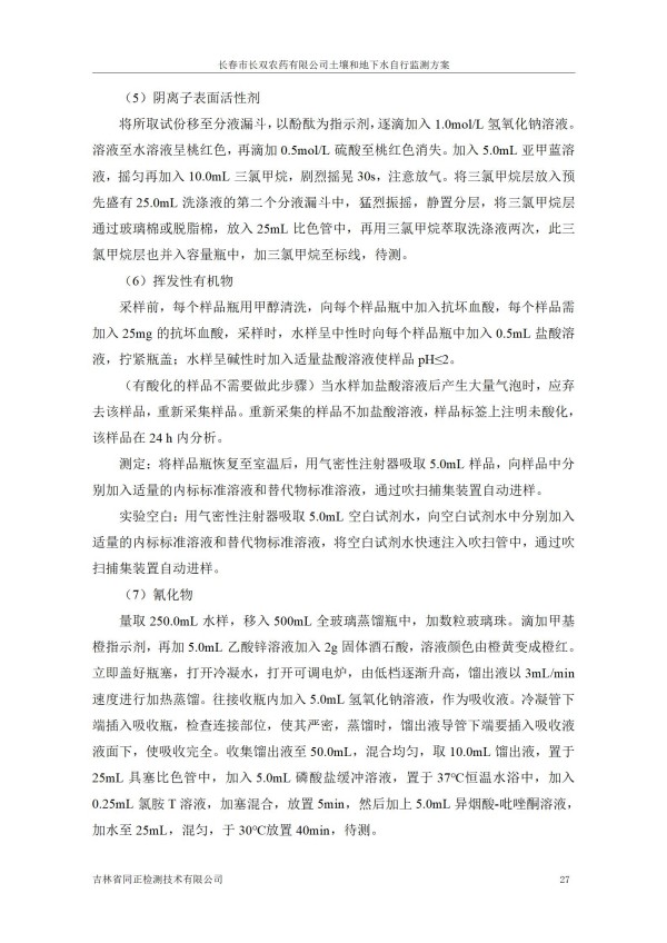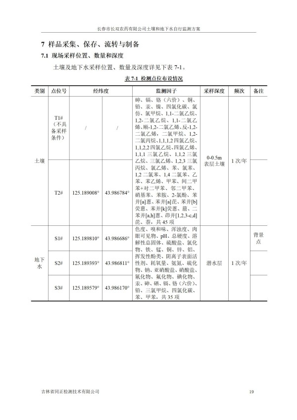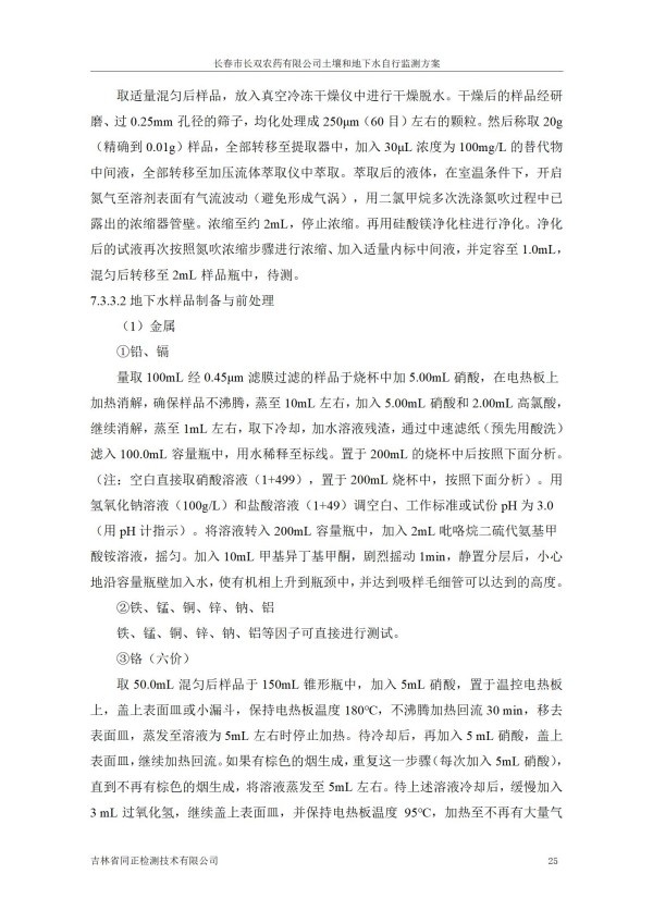 长春市长双农药有限公司土壤和地下水自行监测方案(2025度)